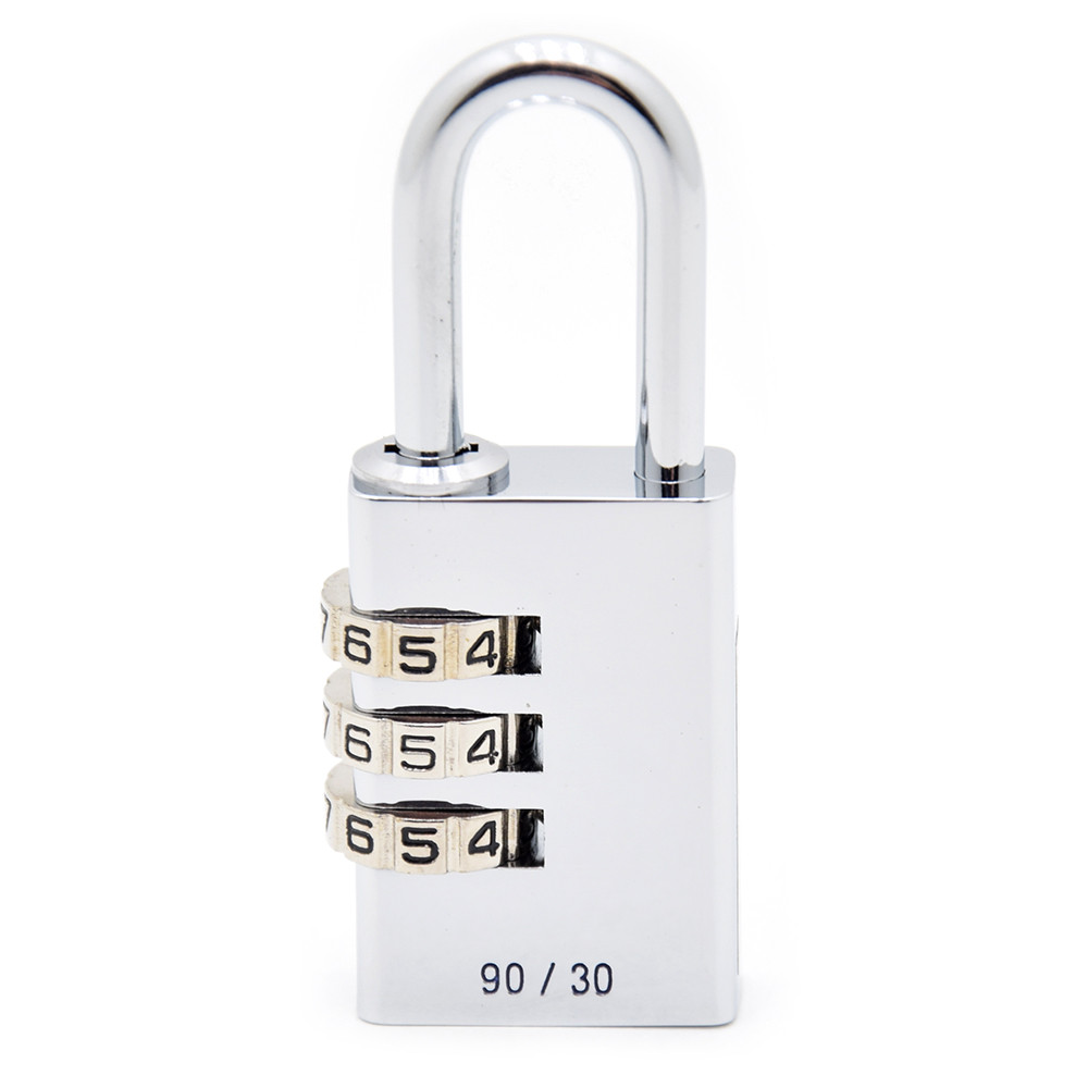 • masszív krómozott test • krómozott acél kengyel • 20, 30-as méretnél 3 tárcsás számzár • 40-es méretnél 4 tárcsás számzár • átkódolható számkombináció • 1.000 vagy 10.000 kódvariáció • könnyű kezelhetőség • SB: bliszter csomagolás
