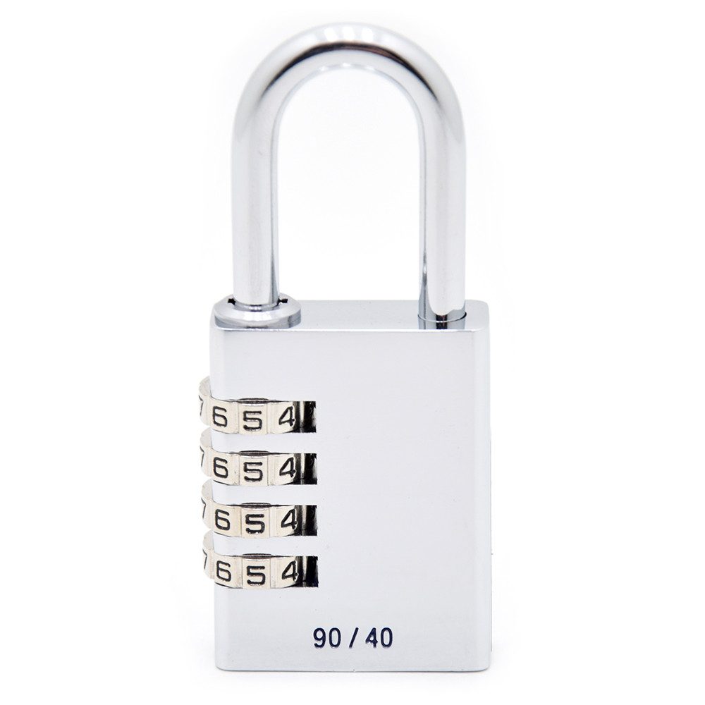 • masszív krómozott test • krómozott acél kengyel • 20, 30-as méretnél 3 tárcsás számzár • 40-es méretnél 4 tárcsás számzár • átkódolható számkombináció • 1.000 vagy 10.000 kódvariáció • könnyű kezelhetőség • SB: bliszter csomagolás