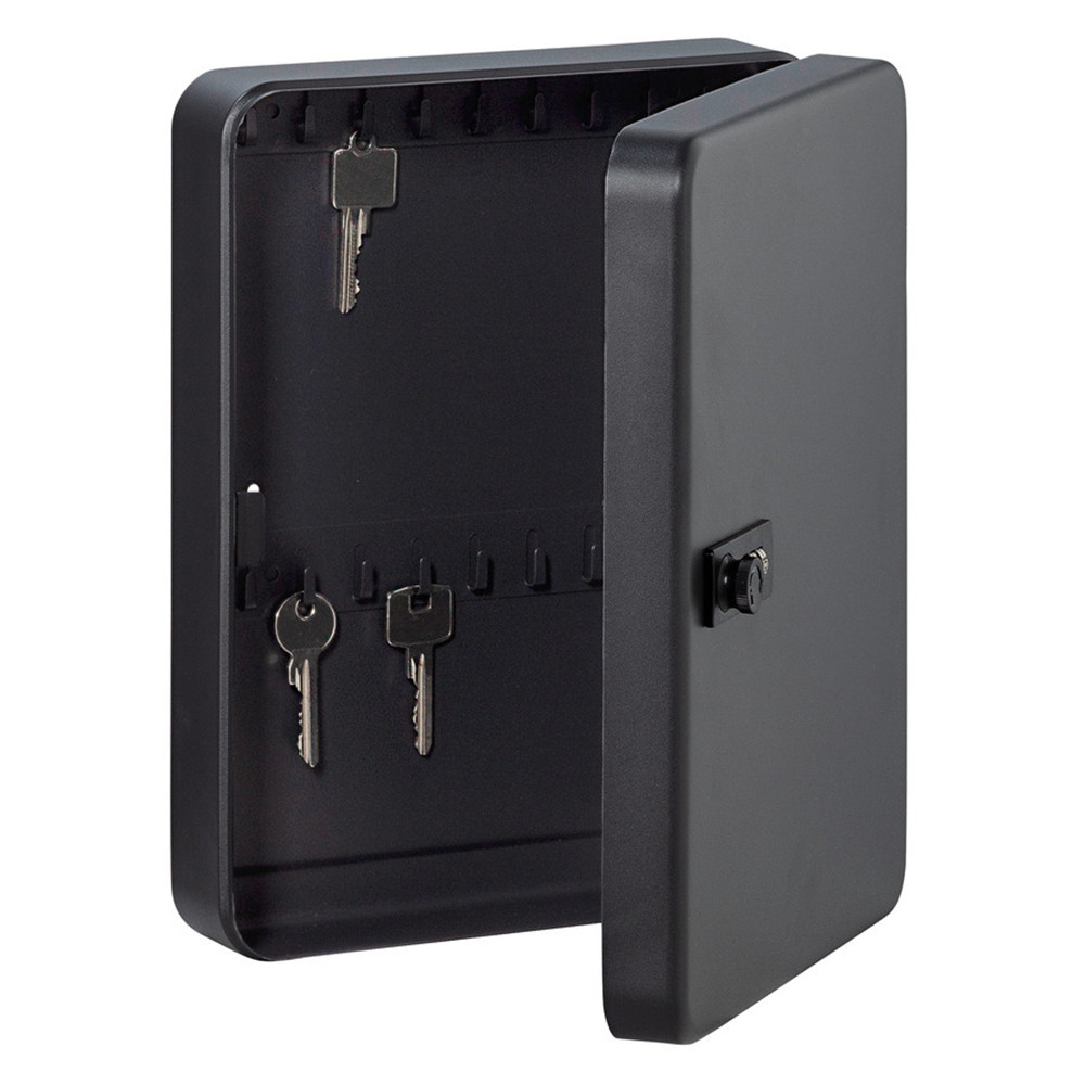 • acéllemez kulcskazetta praktikus számzárral • erős acéllemez ház és ajtó • masszív rejtett zsanérozás • hagyományos négyszögletes forma • számozott fix akasztók • 3 tárcsás számzár • átkódolható számkombináció • 1.000 kódvariáció • könnyű kezelhetőség (nincs szükség kulcsra) • falra szerelhető (két rögzítő furat) • kétféle méretben • fekete színben • rögzítő csavarokkal