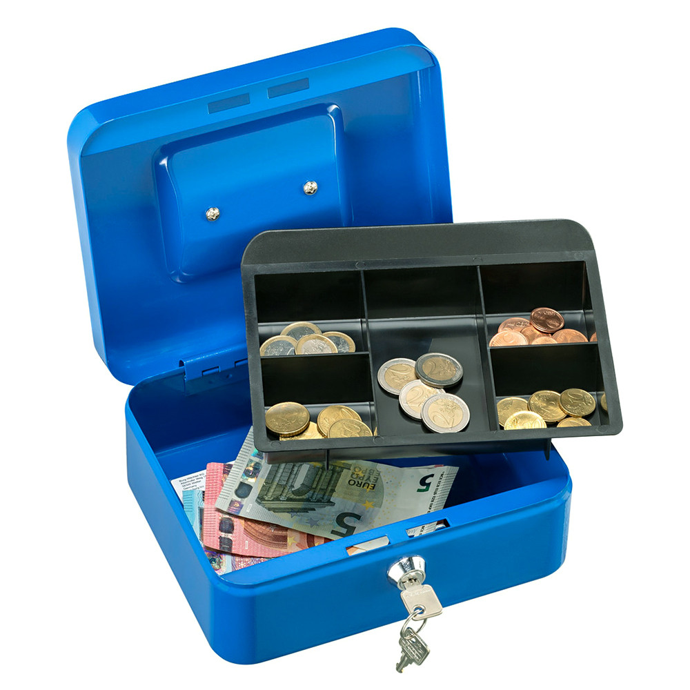 • acéllemez pénzkazetta • rejtett belső zsanérozás • négyszögletes forma lekerekített élekkel • süllyesztett krómozott fém fogantyú • kivehető műanyag aprópénztartó • alatta hely a bankjegyeknek • krómozott lamellás zár • kettő darab kulccsal • többféle méretben és színben forgalmazzuk • 5012 modellnél aprópénz bedobó nyílás található a fedélen (gyerek persely)