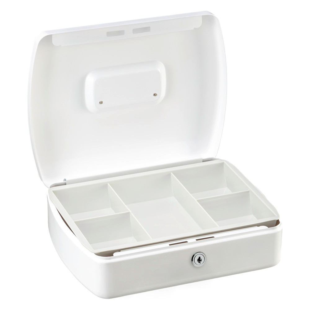 • minőségi pénzkazetta • erős acéllemez test és fedél • masszív belső zsanérozás • elegánsan ívelt forma • süllyesztett fém fogantyú • kivehető műanyag aprópénztartó • alatta hely a bankjegyeknek • minőségi 5 csapos cilinderzár • kettő darab kulccsal • többféle méretben és színben • 2127 típus: aprópénz bedobó nyílás a fedélen (gyerek persely) • aprópénztartó betétek: • 2127 típusnál: nincs rekesz • 2167 típusnál: 2 rekesz (Tray 14) • 2207 típusnál: 5 rekesz (Tray 7) • 2257 típusnál: 5 rekesz (Tray 8) • 2307 típusnál: 5 rekesz (Tray 17) • betétek külön is rendelhetőek • nyerskulcs típusa: 65L