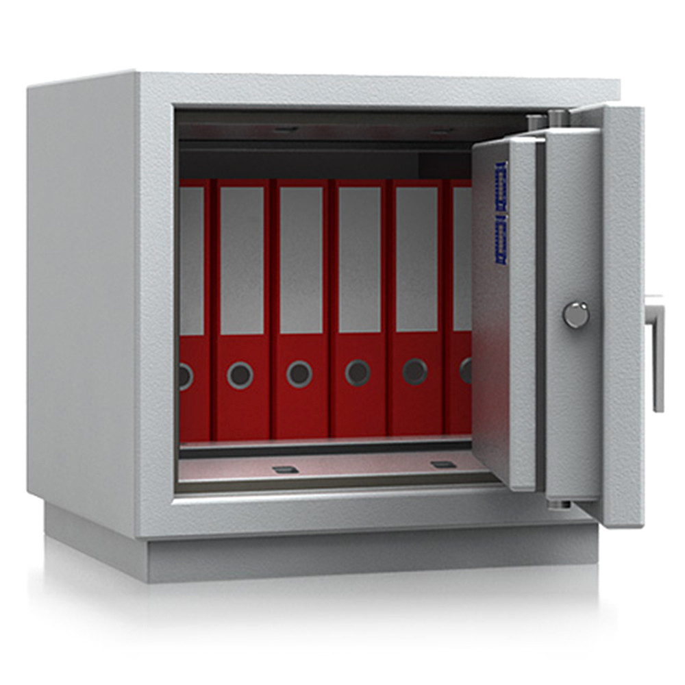 • 120 perces tűzállóság dokumentumok részére • 1090C-on a belső hőmérséklet 150C alatt marad • többrétegű acél test, speciális hőszigetelő töltettel • 132 mm vastag, többrétegű acél ajtó, speciális töltettel • speciális füst,- és vízszigetelő tömítés az ajtóban • 180 fokos ajtónyitás a külső zsanéroknak köszönhetően • háromirányú zárás, 25 mm-es kerek, acél hevederekkel • erős rögzítő fülek a zsanéroldalon • felfúrás ellen mangán acéllappal védett zárszerkezet • állítható magasságú polcok • rögzítő furat lefelé • világosszürke (RAL 7035) szín