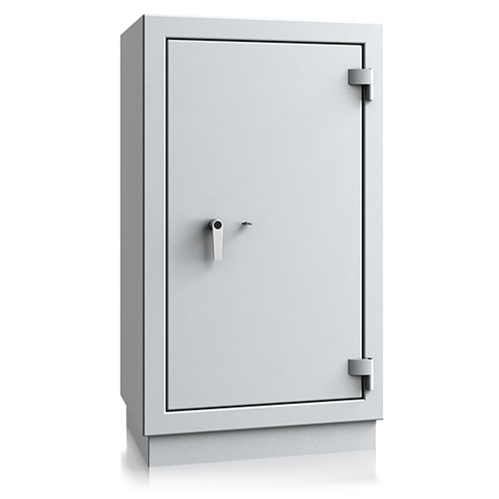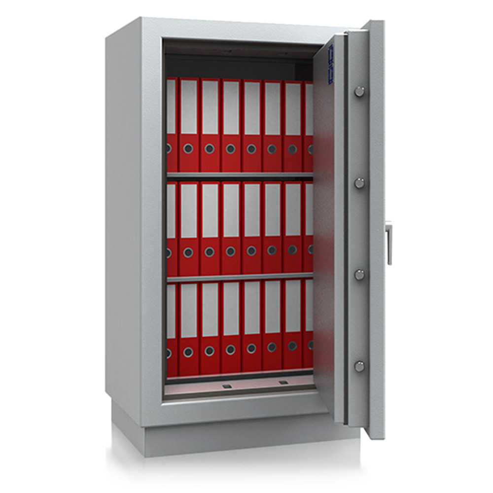 • 120 perces tűzállóság dokumentumok részére • 1090C-on a belső hőmérséklet 150C alatt marad • többrétegű acél test, speciális hőszigetelő töltettel • 132 mm vastag, többrétegű acél ajtó, speciális töltettel • speciális füst,- és vízszigetelő tömítés az ajtóban • 180 fokos ajtónyitás a külső zsanéroknak köszönhetően • háromirányú zárás, 25 mm-es kerek, acél hevederekkel • erős rögzítő fülek a zsanéroldalon • felfúrás ellen mangán acéllappal védett zárszerkezet • állítható magasságú polcok • rögzítő furat lefelé • világosszürke (RAL 7035) szín