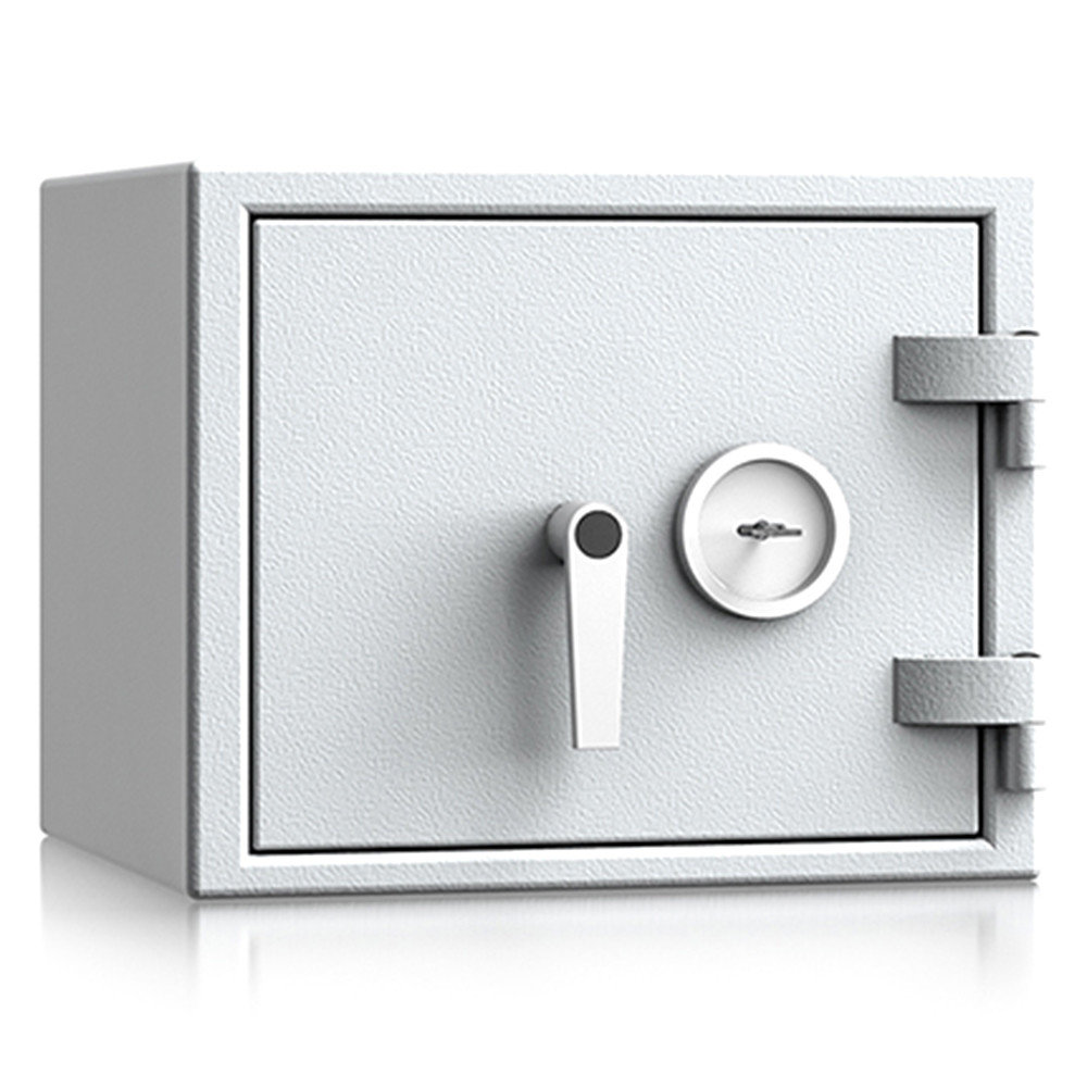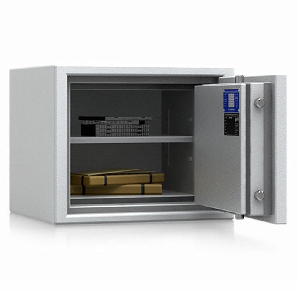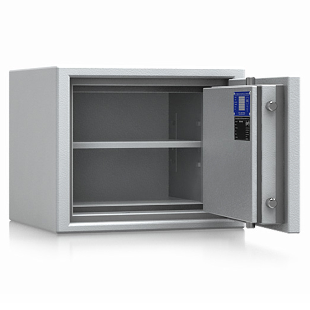 • 60 perces tűzállóság dokumentumok részére • 1090C-on a belső hőmérséklet 150C alatt marad • többrétegű acél test, speciális hőszigetelő töltettel • 95 mm vastag, többrétegű acél ajtó, speciális töltettel • speciális füst,- és vízszigetelő tömítés az ajtóban • 180 fokos ajtónyitás a külső zsanéroknak köszönhetően • háromirányú zárás, 25 mm-es kerek, acél hevederekkel • erős rögzítő fülek a zsanéroldalon • felfúrás ellen mangán acéllappal védett zárszerkezet • állítható magasságú polcok • rögzítő furat lefelé • világosszürke (RAL 7035) szín