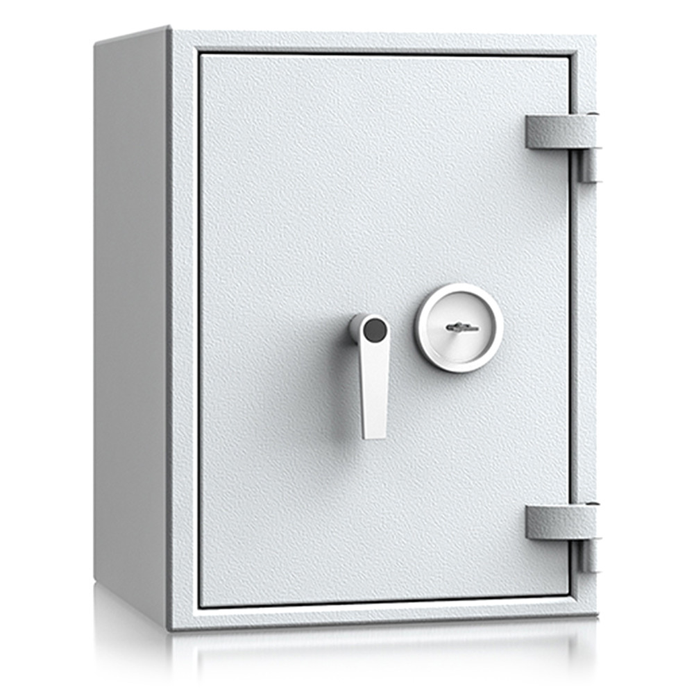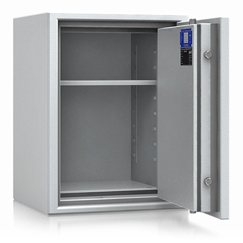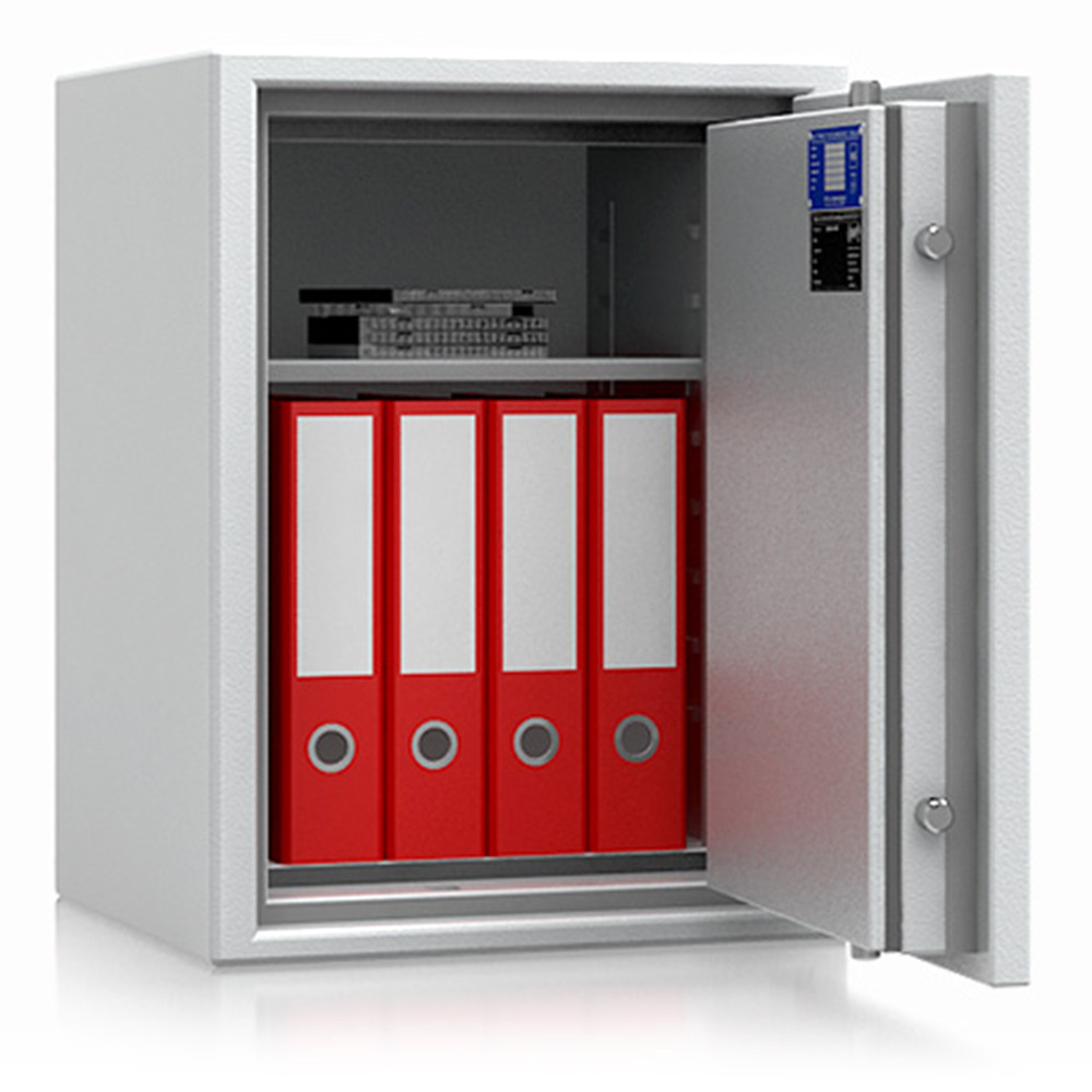• 60 perces tűzállóság dokumentumok részére • 1090C-on a belső hőmérséklet 150C alatt marad • többrétegű acél test, speciális hőszigetelő töltettel • 95 mm vastag, többrétegű acél ajtó, speciális töltettel • speciális füst,- és vízszigetelő tömítés az ajtóban • 180 fokos ajtónyitás a külső zsanéroknak köszönhetően • háromirányú zárás, 25 mm-es kerek, acél hevederekkel • erős rögzítő fülek a zsanéroldalon • felfúrás ellen mangán acéllappal védett zárszerkezet • állítható magasságú polcok • rögzítő furat lefelé • világosszürke (RAL 7035) szín