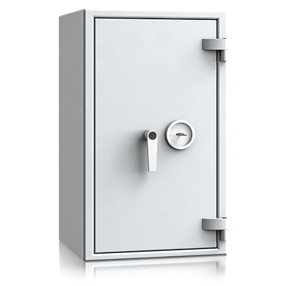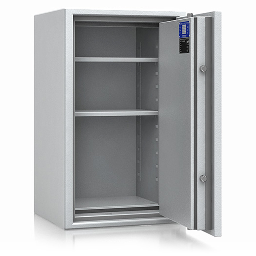 • 60 perces tűzállóság dokumentumok részére • 1090C-on a belső hőmérséklet 150C alatt marad • többrétegű acél test, speciális hőszigetelő töltettel • 95 mm vastag, többrétegű acél ajtó, speciális töltettel • speciális füst,- és vízszigetelő tömítés az ajtóban • 180 fokos ajtónyitás a külső zsanéroknak köszönhetően • háromirányú zárás, 25 mm-es kerek, acél hevederekkel • erős rögzítő fülek a zsanéroldalon • felfúrás ellen mangán acéllappal védett zárszerkezet • állítható magasságú polcok • rögzítő furat lefelé • világosszürke (RAL 7035) szín