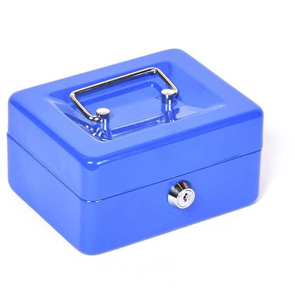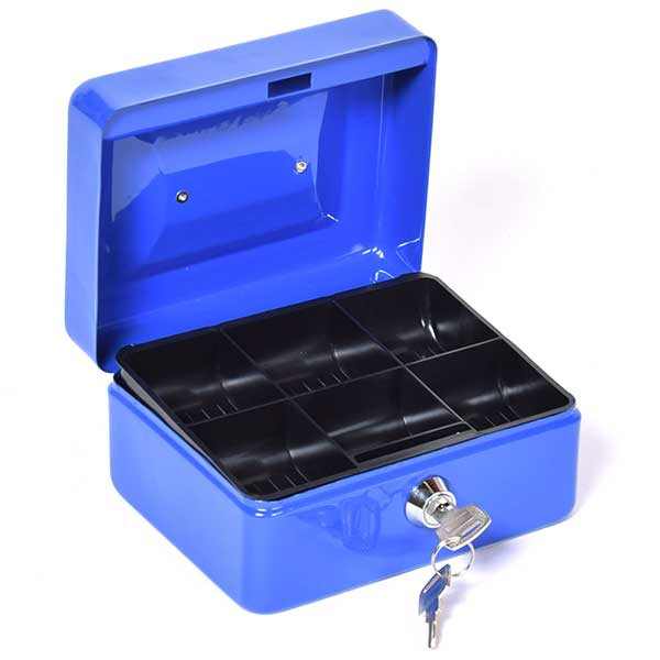 • acéllemez pénzkazetta • rejtett belső zsanérozás • négyszögletes forma lekerekített élekkel • süllyesztett fém fogantyú • kivehető műanyag aprópénztartó • alatta hely a bankjegyeknek • krómozott lamellás zár • kettő darab kulccsal • többféle méretben és színben