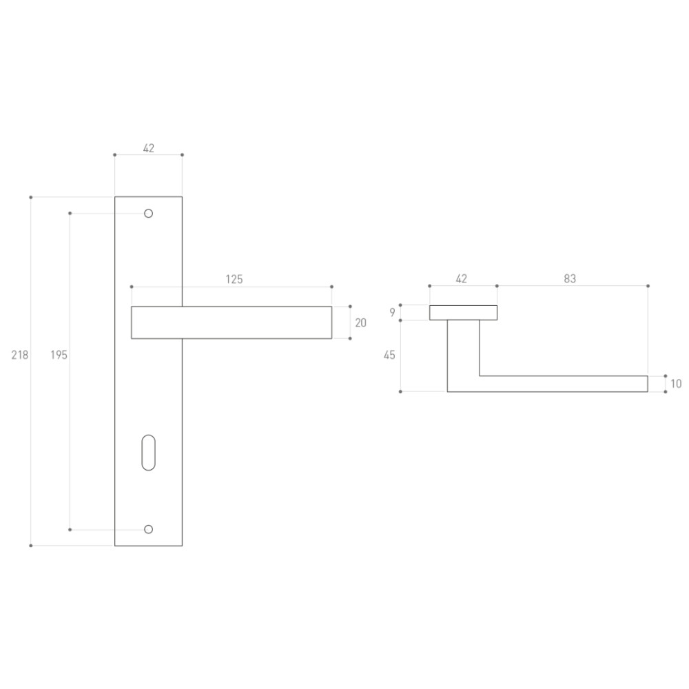 •hosszúcímes rozsdamentes acél ajtókilincs•cilinder záras beltéri ajtókhoz•modern szögletes megjelenés•105 mm hosszú, 8 x 8 mm-es kilincs tengely•80 mm hosszú (méretre vágható) rögzítő csavar•mindkét oldalon rugós mechanizmussal•kilincs lenyomás után visszaáll vízszintes helyzetbe•felszereléshez szükséges anyagokkal•többféle méretben és színben áruljuk•kilincstengely és kulcslyuk közötti távolság: 72 mm
