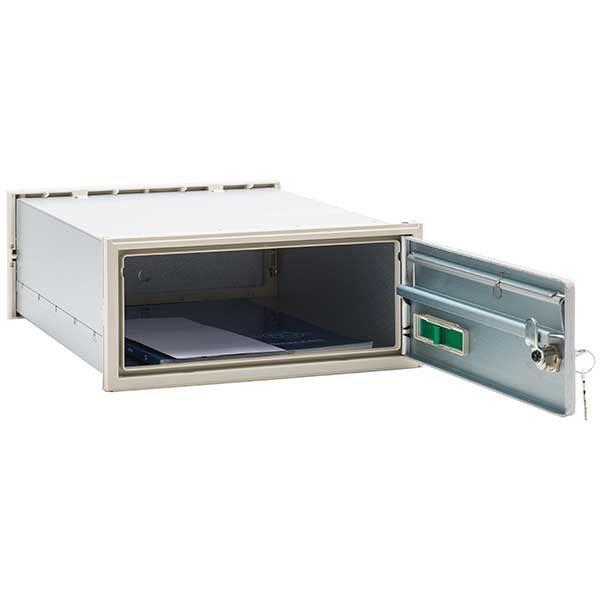 • kerítésbe építhető postaláda • 380 mm fix beépítési mélység • anyaga tartós alumínium lemez • bézs színű ABS műanyag keret • extrém időjárásálló kivitel • soroló sínekkel könnyen tömbösíthető • ideális befalazható társasházi postaláda • elülső bedobónyílás rugós esővédővel • oldalra nyíló elülső ajtó • műanyag névtartó • krómozott postaláda zár • kettő darab kulccsal • exkluzív kivitelű postaláda