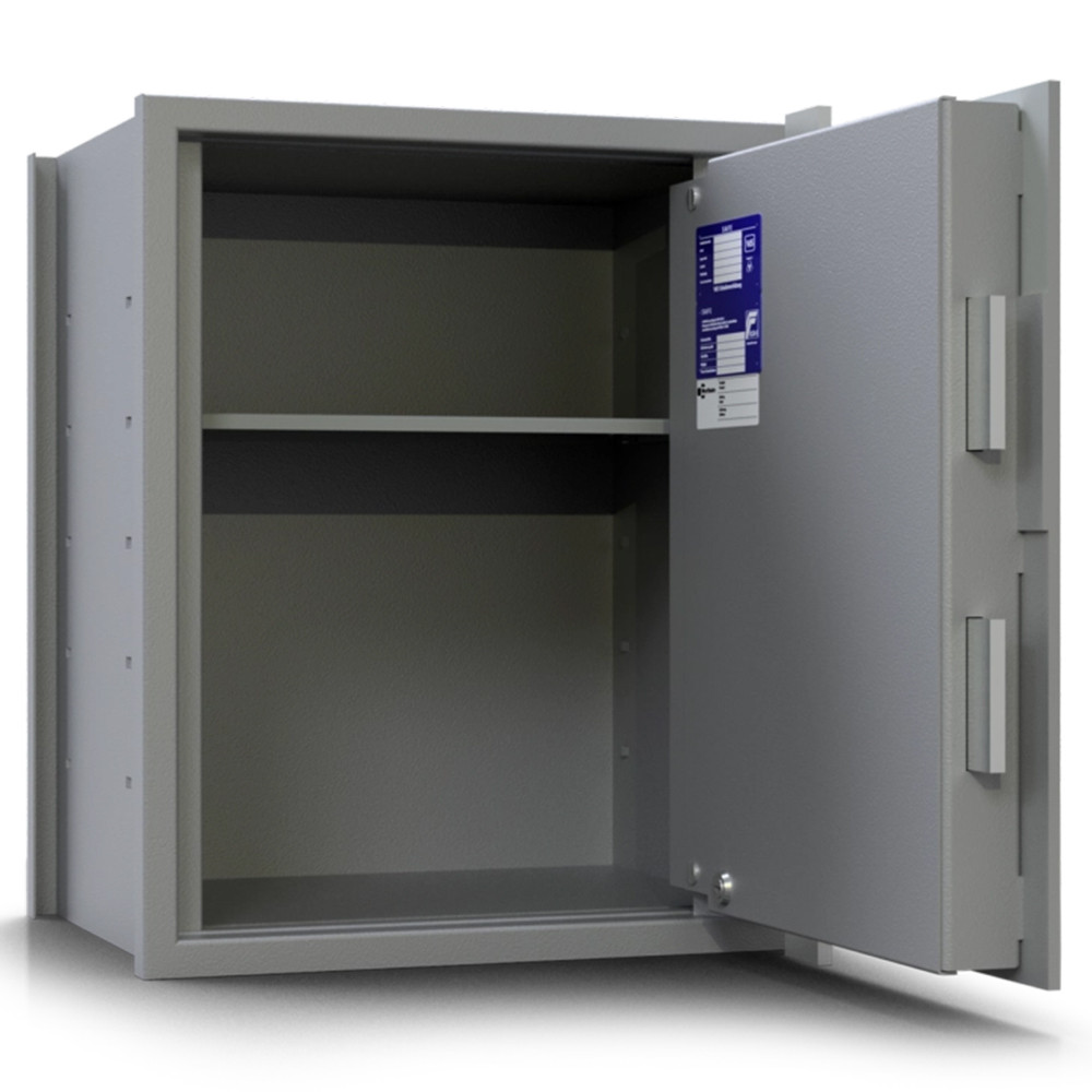 • 2mm-es acél test (hátsó acél pajzzsal is rendelhető) • 65mm vastag duplafalú ajtó, 8mm-es acél borítással • 20mm-re kiemelkedő kör alakú alumínium kilincs • 90 fokos ajtónyitás, erős belső zsanérokkal • háromirányú zárás tömör acél hevederekkel (15x90mm-es oldalra, 10x50mm-es felfelé és lefelé) • rozsdamentes belső szerkezet és kilincsmű (werk) • mangán acéllappal védett zárszerkezet (fúrás ellen) • rugós, műanyag huzalos passzív zár (felfúrásra, átvágásra és zárbeütésre is aktiválódik) • huzal elszakadása után a páncélszekrény nem nyitható • felfogató lap rezgésérzékelőnek (testen és az ajtón is) • kivehető és állítható magasságú polc(ok) • alapkivitelben világosszürke (RAL 7035) színben • többféle zárkombinációval és kiegészítővel is rendelhető • fali páncélszekrény csak igényeseknek