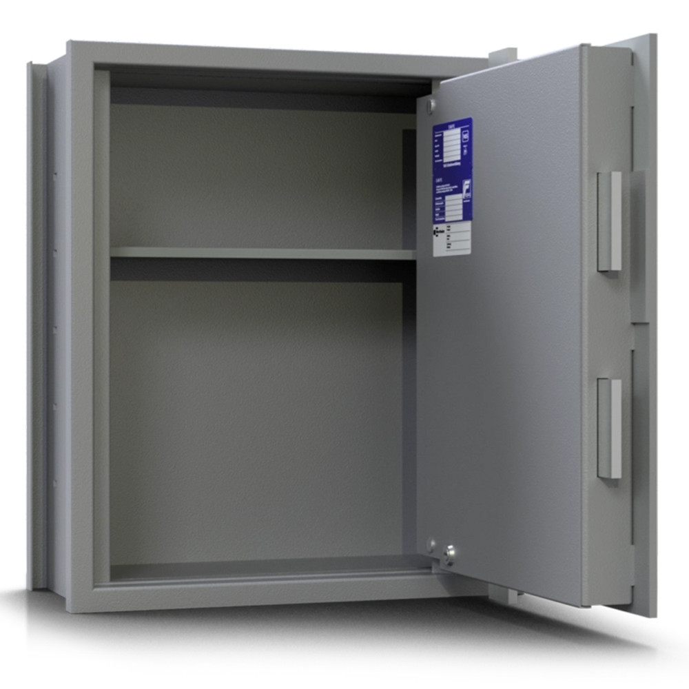 • 2mm-es acél test (hátsó acél pajzzsal is rendelhető) • 65mm vastag duplafalú ajtó, 8mm-es acél borítással • 20mm-re kiemelkedő kör alakú alumínium kilincs • 90 fokos ajtónyitás, erős belső zsanérokkal • háromirányú zárás tömör acél hevederekkel (15x90mm-es oldalra, 10x50mm-es felfelé és lefelé) • rozsdamentes belső szerkezet és kilincsmű (werk) • mangán acéllappal védett zárszerkezet (fúrás ellen) • rugós, műanyag huzalos passzív zár (felfúrásra, átvágásra és zárbeütésre is aktiválódik) • huzal elszakadása után a páncélszekrény nem nyitható • felfogató lap rezgésérzékelőnek (testen és az ajtón is) • kivehető és állítható magasságú polc(ok) • alapkivitelben világosszürke (RAL 7035) színben • többféle zárkombinációval és kiegészítővel is rendelhető • fali páncélszekrény csak igényeseknek