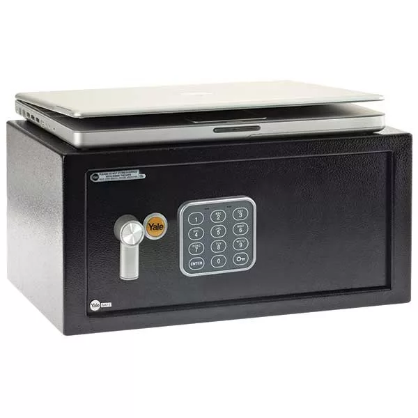 • elektronikus laptopszéf besurranó tolvajok ellen • beépített 130dB-es sziréna az ajtóban • riasztás ütögetés és többszöri téves kódbevitel esetén • alarm funkció egyszerűen be és kikapcsolható • 1,5 mm-es egyfalú acél test, 4 mm-es acél ajtó • 90 fokos ajtónyitás jobboldali zsanérokkal • egyirányú zárás 16 mm-es kerek acél hevederekkel • elektronikus számkombinációs zár • 3-8 számjegy közötti felhasználói kód • 4 téves kódbevitel után 3 perces büntetőidő • mechanikus vésznyitási lehetőség körkulccsal • zár 4 db LR03 AAA 1,5V elemmel működik • kilincs 20 mm-t áll ki az ajtó síkjából • 4db, 8mm-es rögzítő furat lefelé és hátrafelé