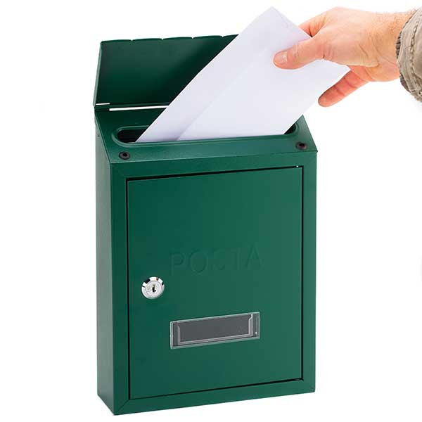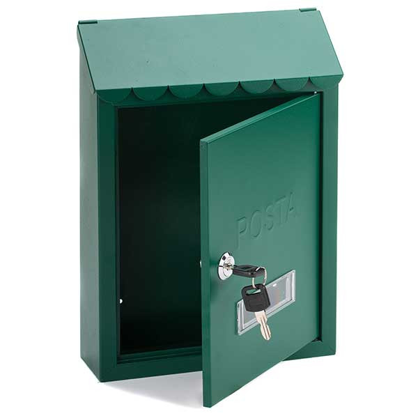 • kapun, kerítésen belülre vagy kívülre szerelhető • klasszikus megjelenésű kisméretű postaláda • anyaga horganyzott acéllemez • műanyag porszórással színezett • esővédett felső bedobónyílás felhajtható tetővel kerítésen kívüli és hátsó bedobónyílás kerítésen belüli szereléshez • oldalra nyíló postaláda ajtó • betekintő nyílás és névtartó • krómozott postaláda zár • kettő darab kulccsal • többféle színben rendelhető