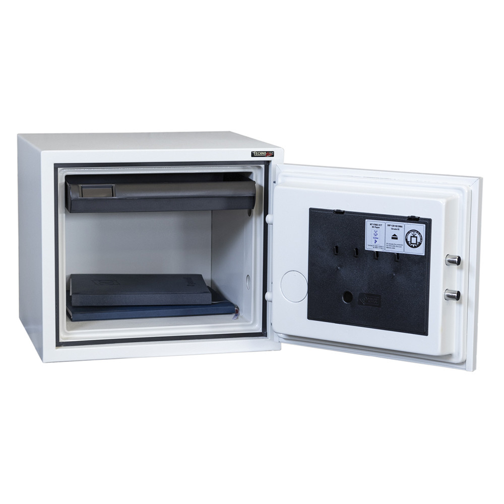 •duplafalú tűzálló széf digitális számzárral•60 perces tűzállóság dokumentumok részére•tűzvédelmet az NT FIRE 017-60 P osztály szerint tesztelték•duplafalú acél test és ajtó hőszigetelő töltettel•180 fokos ajtónyitás jobboldali külső zsanérokkal•testbe forduló tüskék (zsanérlevágás ellen)•elektronikus számkombinációs zár•szabadon programozható felhasználói kód•külső elemtartó, kívülről cserélhető elemekkel•zár 4 db Mignon LR 6 AA 1,5V elemmel működik•2 db biztonságos rögzítő furat lefelé•rögzítő csavarokkal és elemekkel áruljuk